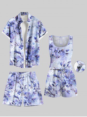 Plus Size Flowers Leaf Ombre Print Hawaii Beach Shorts For Men - Light Purple - Xl
