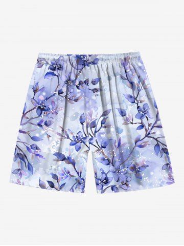 Plus Size Flowers Leaf Ombre Print Hawaii Beach Shorts For Men - Light Purple - 8xl