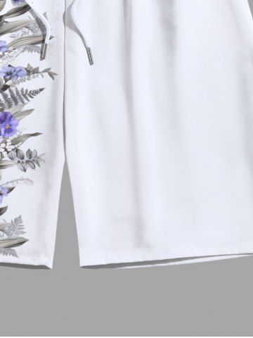 Plus Size Flowers Leaf Print Hawaii Beach Shorts For Men - White - 5xl