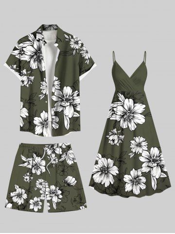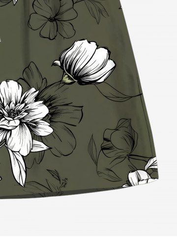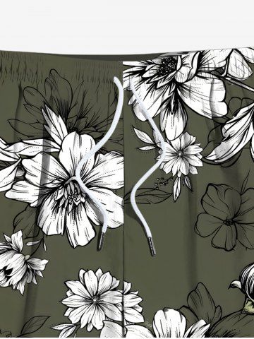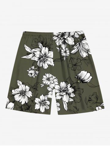 Plus Size Flowers Leaf Print Hawaii Beach Shorts For Men - Deep Green - M