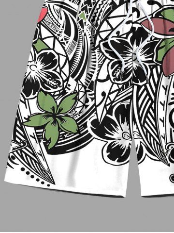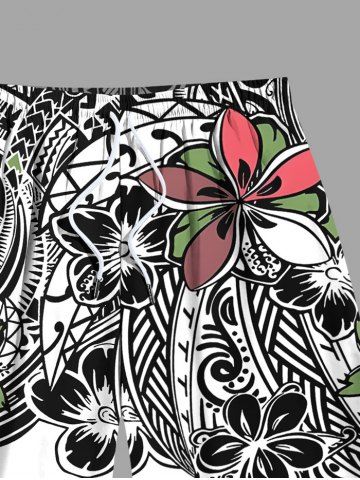 Plus Size Flowers Print Hawaii Beach Shorts For Men - Black - 6xl