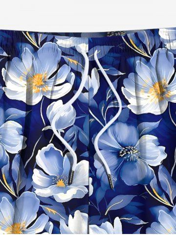 Plus Size Flowers Print Hawaii Beach Shorts For Men - Blue - 5xl