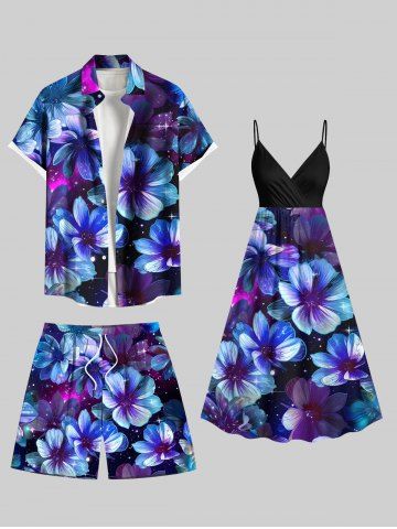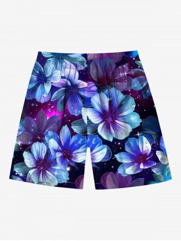 Bottoms > Plus Size Galaxy Flowers Glitter 3D Print Hawaii Beach Shirts For Men