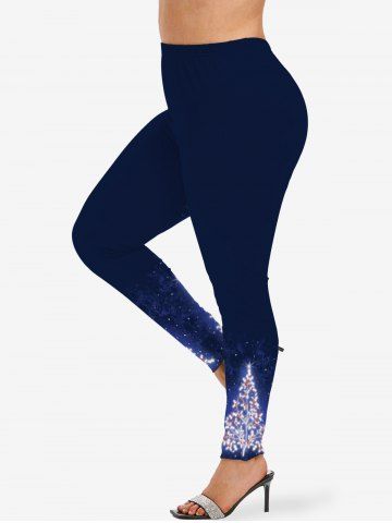 Plus Size Glitter Christmas Tree Ombre Galaxy Print Leggings - Deep Blue - 1x
