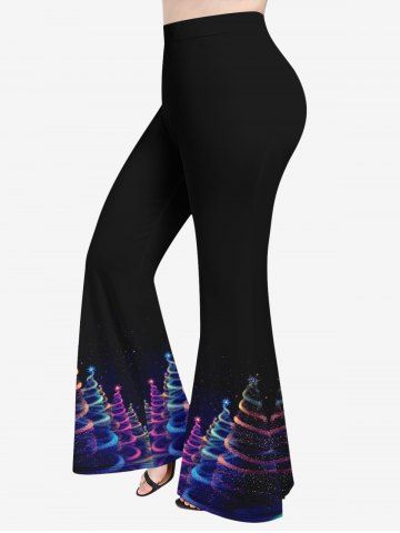 Plus Size Glitter Ombre Christmas Tree Galaxy Print Flare Pants - Black - 6x
