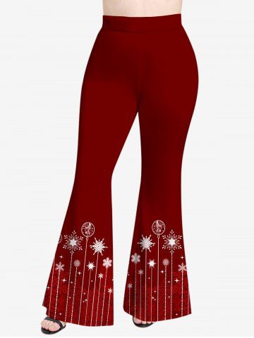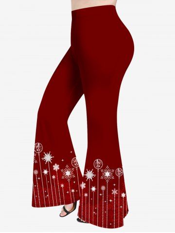 Plus Size Glitter Snowflake Ball Line Print Christmas Flare Pants - Deep Red - Xs
