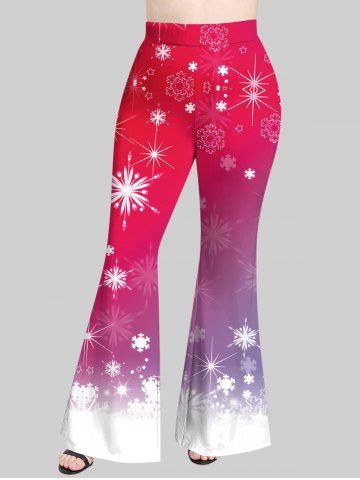 Plus Size Glitter Snowflake Print Ombre Christmas Flare Pants - Red - 1x