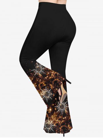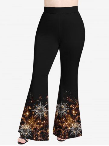 Plus Size Glitter Sparkling Christmas Ball Light Snowflake Print Ombre Pull On Flare Pants - Black - 2x