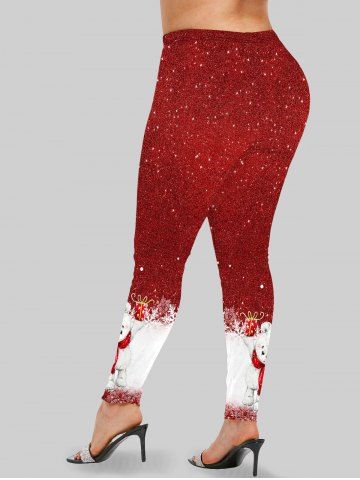 Plus Size Glitter Sparkling Christmas Hat Bear Snowflake Gift Box Sequins Print Skinny Leggings - Red - 5x