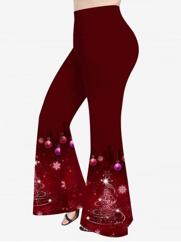 Plus Size Glitter Sparkling Christmas Tree Ball Snowflake Galaxy Print Ombre Pull On Flare Pants - Deep Red - 4x