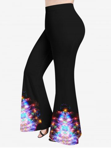 Bottoms > Plus Size Glitter Sparkling Christmas Tree Light Tree Branch Print Pull On Flare Pants