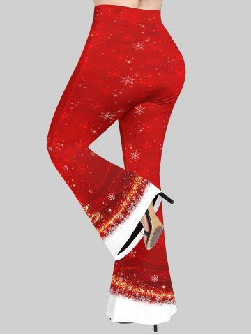 Plus Size Glitter Sparkling Christmas Tree Snowflake Print Flare Pants - Red - 2x