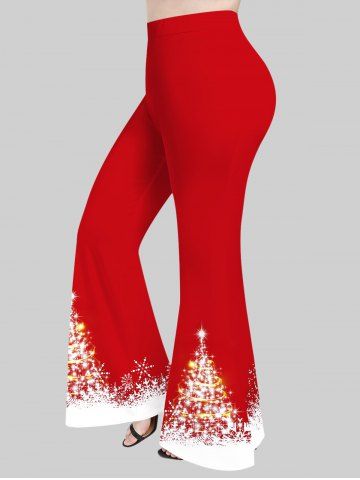 Plus Size Glitter Sparkling Christmas Tree Snowflake Print Flare Pants - Red - 3x