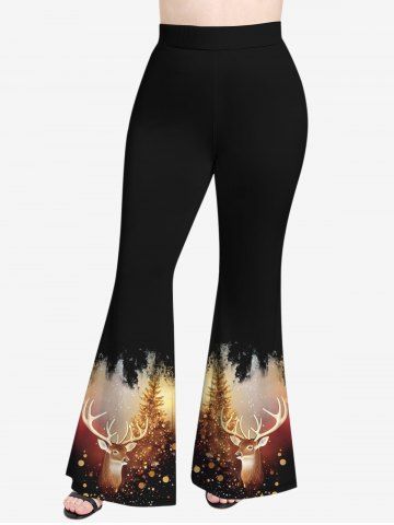 Bottoms > Plus Size Glitter Sparkling Sequins Christmas Tree Elk Ombre Galaxy Print Flare Pants