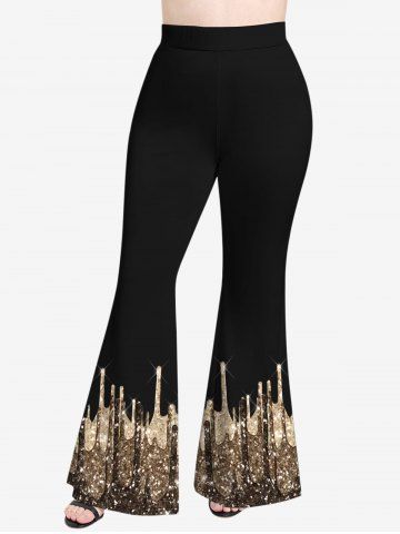 Plus Size Glitter Sparkling Sequins Paint Drop Print Pull On Flare Pants - Deep Coffee - L