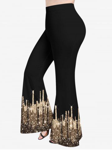 Plus Size Glitter Sparkling Sequins Paint Drop Print Pull On Flare Pants - Deep Coffee - 2x