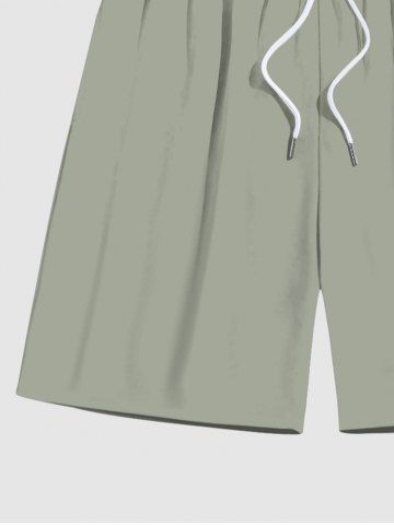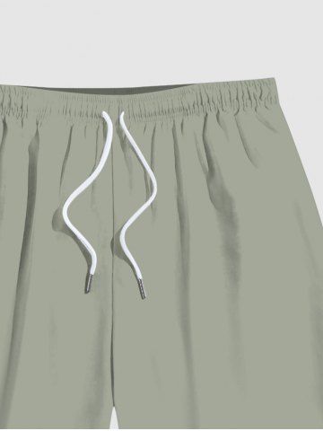 Plus Size Green Solid Color Hawaii Beach Shorts For Men - Light Green - 3xl