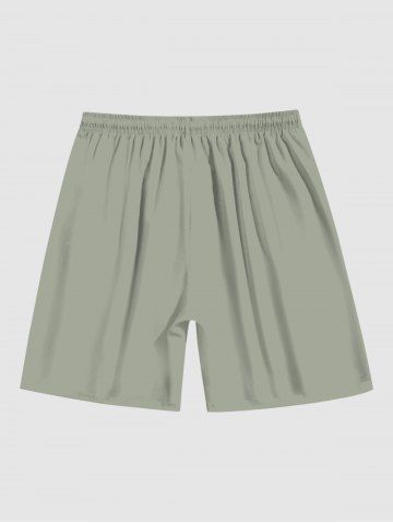Bottoms > Plus Size Green Solid Color Hawaii Beach Shorts For Men