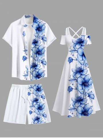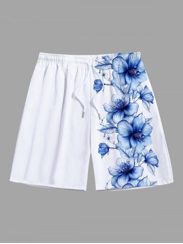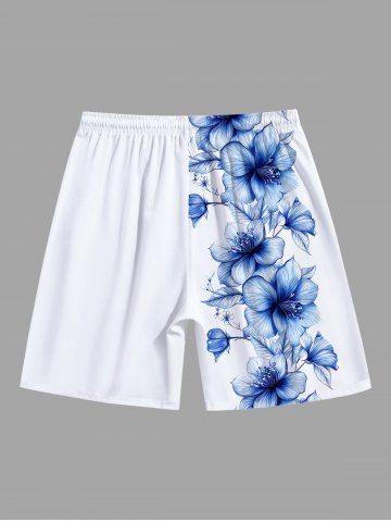 Plus Size Hibiscus Flower Tropical Print Hawaii Beach Shorts For Men - White - 2xl