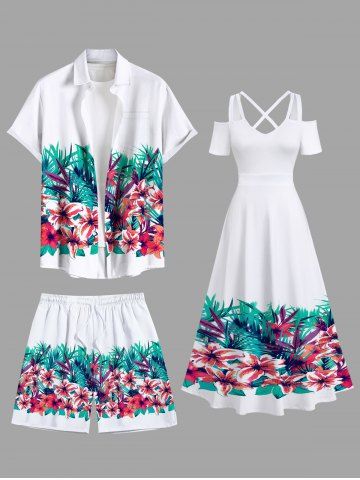 Plus Size Hibiscus Flower Tropical Print Hawaii Beach Shorts For Men - White - M