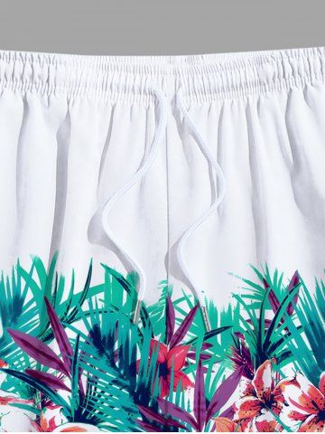 Plus Size Hibiscus Flower Tropical Print Hawaii Beach Shorts For Men - White - 5xl