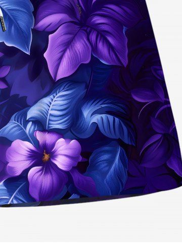 Plus Size Hibiscus Flowers Leaf Print Hawaii Beach Shorts For Men - Blue - 8xl
