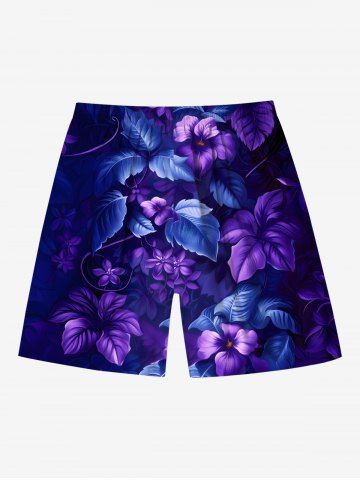 Bottoms > Plus Size Hibiscus Flowers Leaf Print Hawaii Beach Shorts For Men