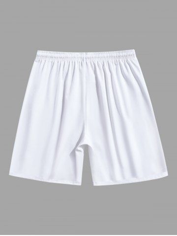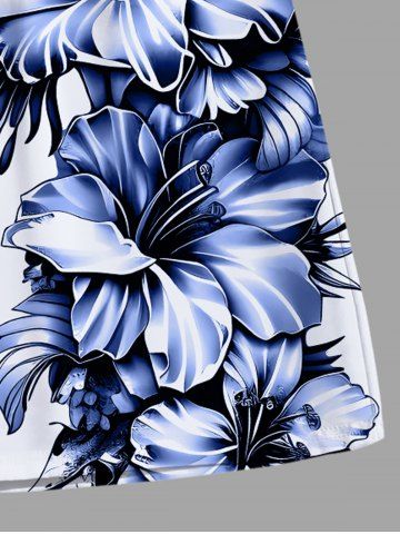 Plus Size Hibiscus Flowers Leaf Tropical Print Hawaii Beach Shorts For Men - White - M