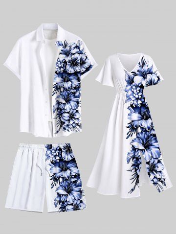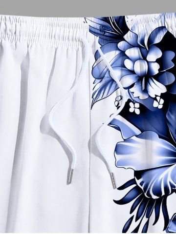 Plus Size Hibiscus Flowers Leaf Tropical Print Hawaii Beach Shorts For Men - White - 2xl