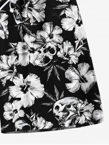 Plus Size Hibiscus Flowers Skulls Print Hawaii Beach Shorts For Men - Black - Xl