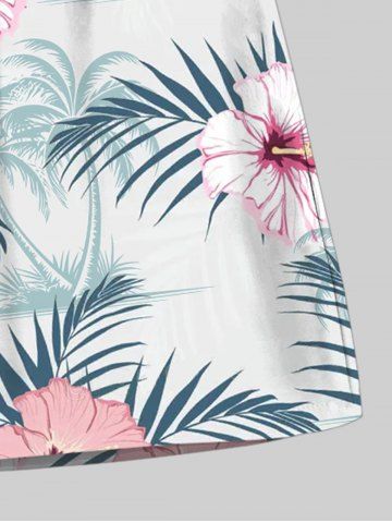Plus Size Hibiscus Flowers Tropical Leaf Coconut Tree Print Hawaii Beach Shorts For Men - White - 6xl