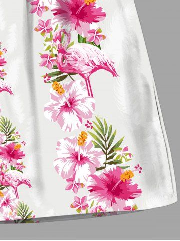 Plus Size Hibiscus Flowers Tropical Leaf Flamingo Print Hawaii Beach Shorts For Men - White - 6xl