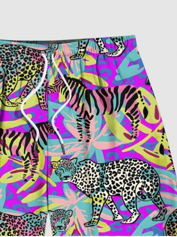 Plus Size Leopard Zebra Tropical Colorful Leaf Print Hawaii Beach Shorts For Men - Multi-a - L