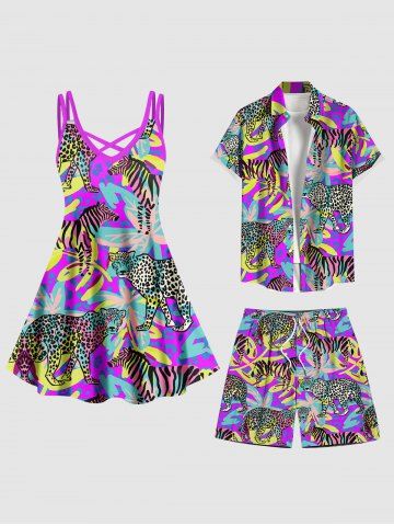 Bottoms > Plus Size Leopard Zebra Tropical Colorful Leaf Print Hawaii Beach Shorts For Men