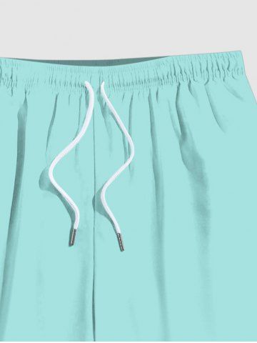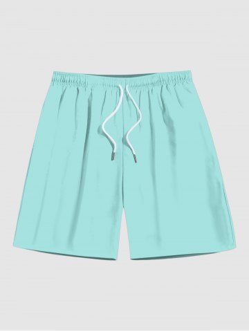 Plus Size Light Green Solid Color Hawaii Beach Shorts For Men - Light Green - 3xl