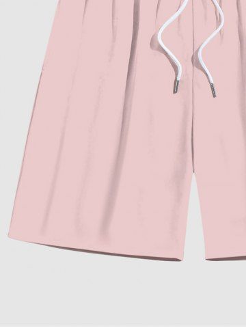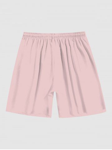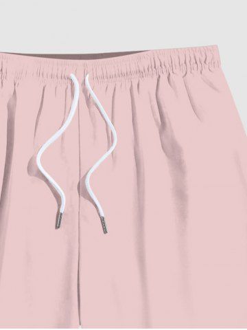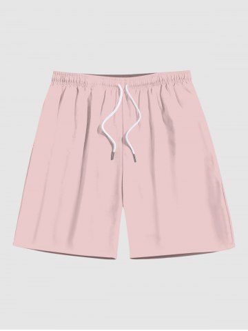 Plus Size Light Pink Solid Color Hawaii Beach Shorts For Men - Light Pink - L