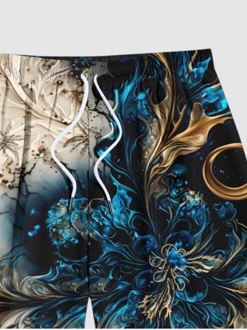 Plus Size Metallic Flower Leaf Print Hawaii Beach Shorts For Men - Black - 7xl