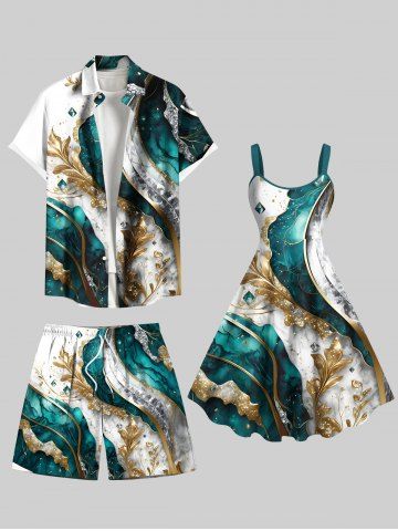 Plus Size Metallic Leaf Diamond Print Hawaii Beach Shorts For Men - Green - Xl