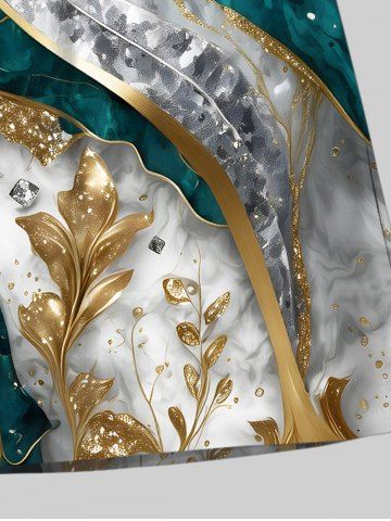 Bottoms > Plus Size Metallic Leaf Diamond Print Hawaii Beach Shorts For Men