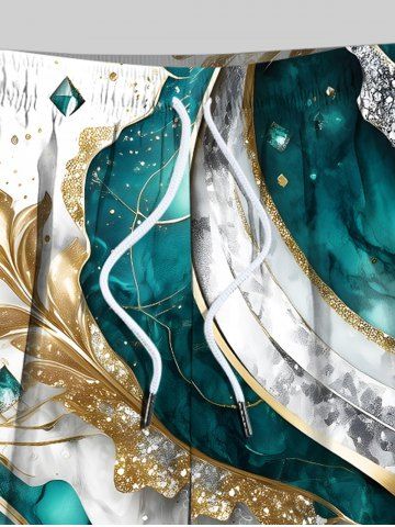 Plus Size Metallic Leaf Diamond Print Hawaii Beach Shorts For Men - Green - 7xl