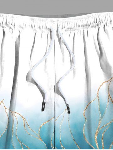 Bottoms > Plus Size Metallic Leaf Ombre Colorblock Print Hawaii Beach Shorts For Men