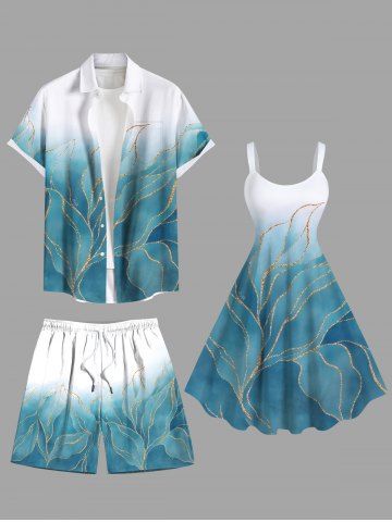 Bottoms > Plus Size Metallic Leaf Ombre Colorblock Print Hawaii Beach Shorts For Men