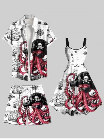 Bottoms > Plus Size Octopus Pirate Ship Rudder Cruise Print Hawaii Beach Shorts For Men