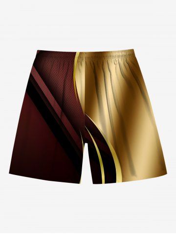 Plus Size Ombre Curve Pattern Colorblock Print Beach Shorts For Men - Coffee - 2xl