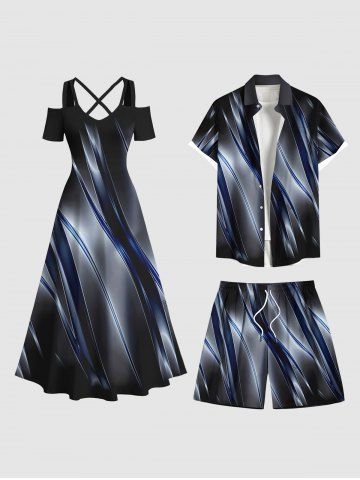 Plus Size Ombre Light Beam Print Beach Shorts For Men - Black - 2xl