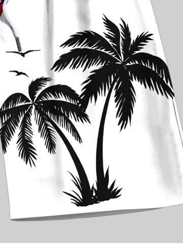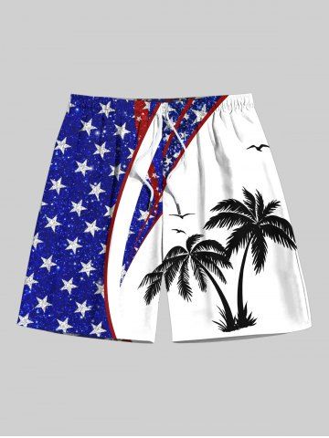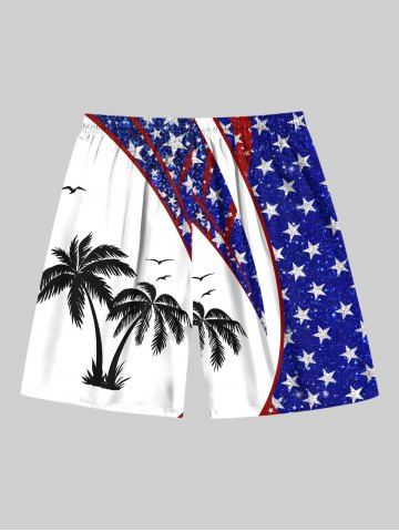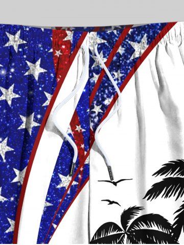 Plus Size Patriotic American Flag Coconut Tree Print Hawaii Beach Shorts For Men - White - 6xl