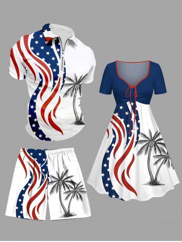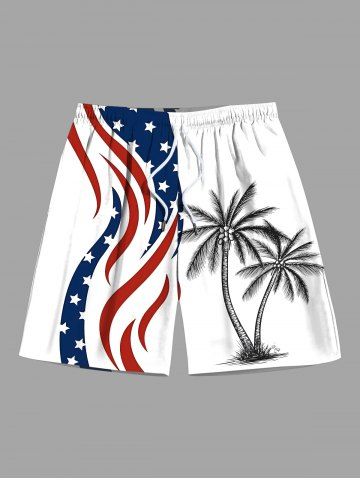 Plus Size Patriotic American Flag Coconut Tree Print Hawaii Beach Shorts For Men - White - 6xl