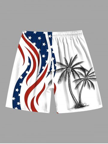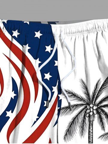 Plus Size Patriotic American Flag Coconut Tree Print Hawaii Beach Shorts For Men - White - 8xl