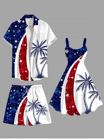 Bottoms > Plus Size Patriotic American Flag Galaxy Coconut Tree Print Hawaii Beach Shorts For Men