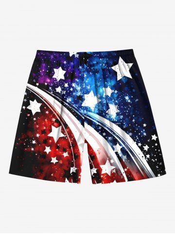 Bottoms > Plus Size Patriotic American Flag Galaxy Tie Dye Print Beach Shorts For Men